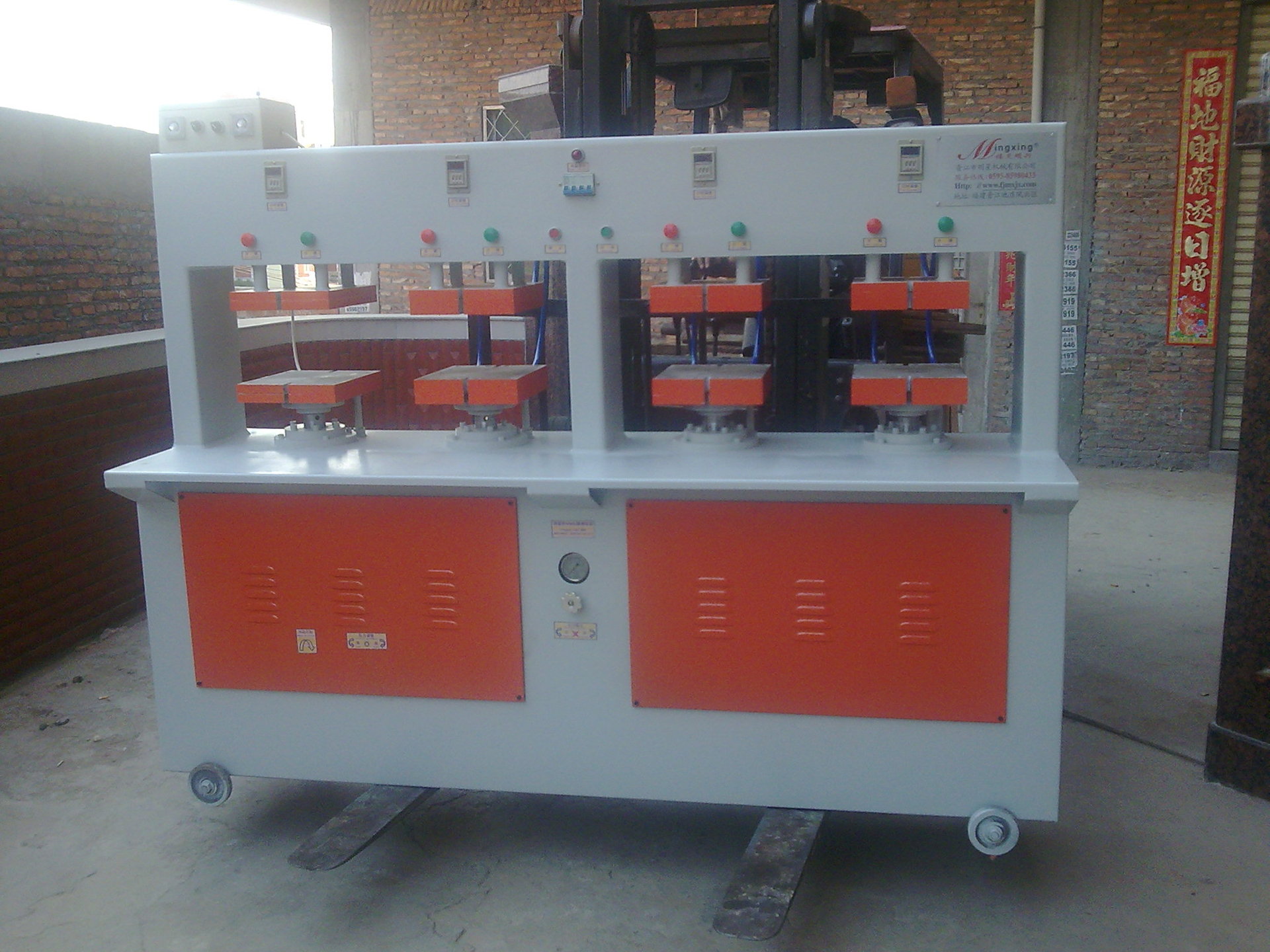 3.采用臺(tái)灣油壓系統(tǒng),加壓時(shí)間短、保壓效果好、成型速度快,同時(shí)單工位也可獨(dú)立操作。可根據(jù)客戶需求提供兩崗位/四崗位機(jī)型.